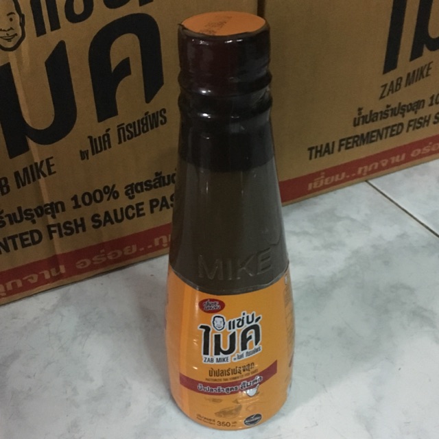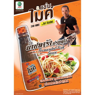 น้ำปลาร้าปรุงสุก แซ่บไมค์ byไมค์ ภิรมย์พร สูตรแซ่บทุกเมนู ฉลากสีน้ำตาลสามารถใช้ปรุงรสอาหารได้หลากหลายชนิด เช่น ส้มตำ,แกงส้ม ,น้ำยาปลา.